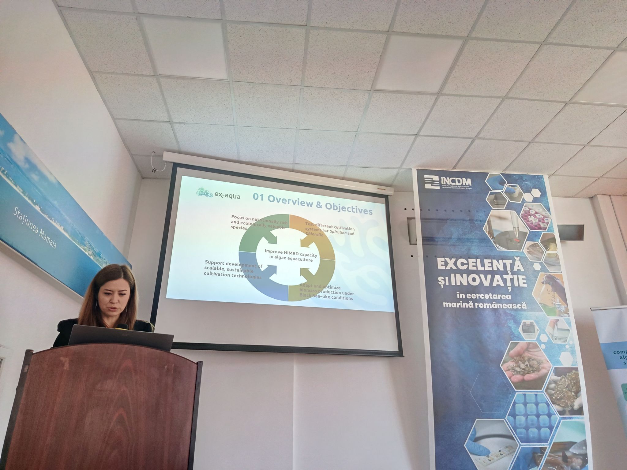 EX-AQUA își propune să poziționeze regiunea Mării Negre pe harta acvaculturii marine și a algelor, prin reducerea disparităților regionale și susținerea economiei albastre și a Pactului Ecologic European. Proiectul încurajează inovația și parteneriatele strategice prin colaborarea cu stakeholderi publici și privați, promovând în același timp transferul de cunoștințe și consolidarea capacităților pentru a poziționa INCDM „Grigore Antipa” ca un centru de excelență în acvacultura durabilă a algelor marine.