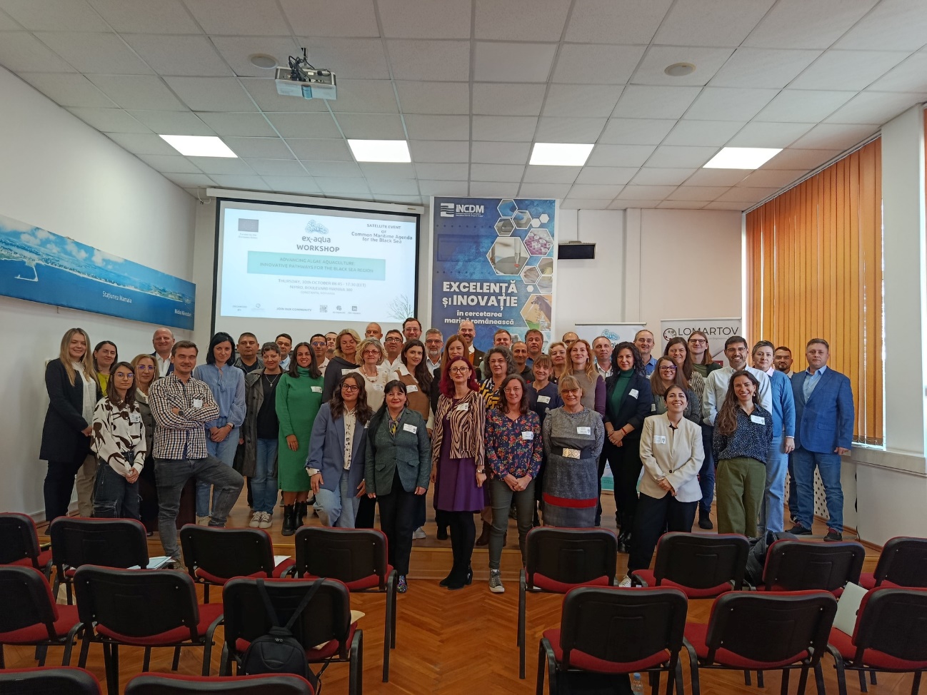 INCDM ”Grigore Antipa” a găzduit workshop-ul “Advancing Algae Aquaculture: Innovative Pathways for the Black Sea Region””, desfășurat în cadrul proiectului EX-AQUA Evenimentul, organizat de LOMARTOV S.L., a reunit parteneri de proiect, factori interesați regionali și experți europeni pentru a oferi o imagine completă asupra modului în care acvacultura algelor poate impulsiona dezvoltarea durabilă în Marea Neagră și nu numai.